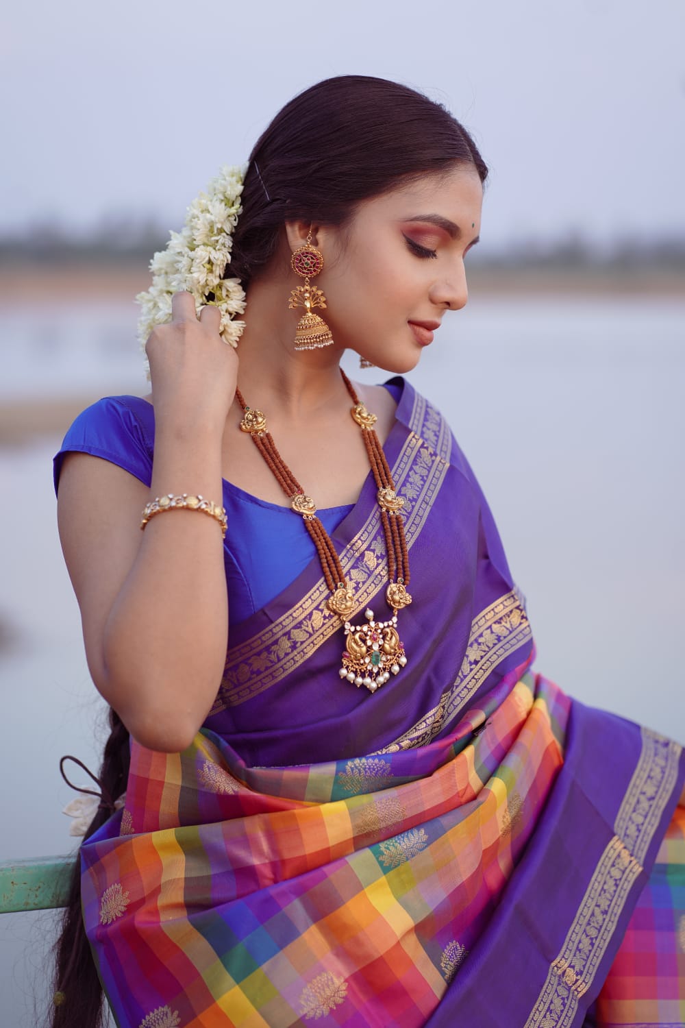 This lemon yellow silver tissue saree with a gold korvai border is a master piece from our Sacred Lotus limited edition collection Padmaraga is a master piece with robbin birds singing on lotus pods and lotus flowers are woven in silver zari and silk thread woven using meenakari technic the border is woven in gold tissue with design is woven using gold zari on gold tissue border this saree is woven with utmost care and precision this unique combination is a must have for handloom admirers to treasure for a lifetime to passon to generations blouse is woven in gold tissue with motifs woven in meenakari.