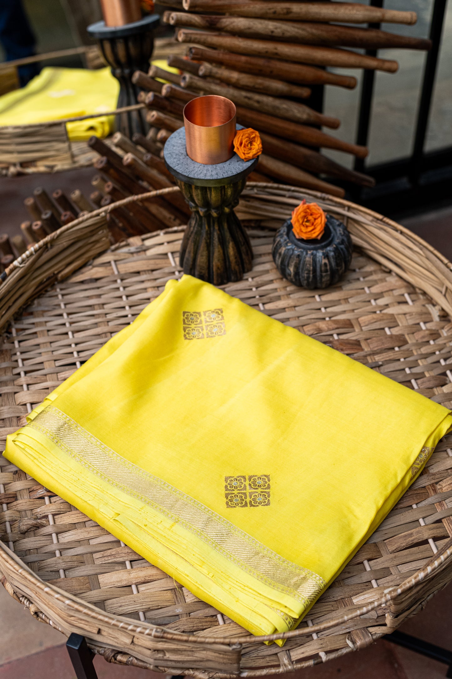 Pastel Yellow Banaras Silk Saree